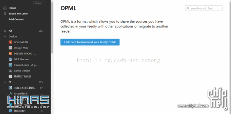 接着我跑回feedly,找到伟大的OPML导出按钮,终于可以告别第三方那个服务商啦,那个激动啊!