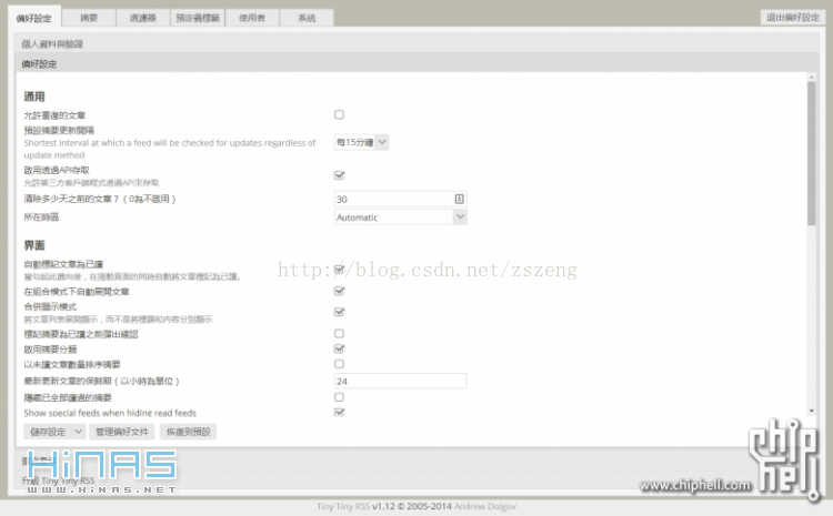 刚过去的7月1日是Google Reader逝世一周年。正好当时看了cnBeta家的相关新闻稿,读到“还有部分人为了避免再依赖于Web服务商,而搭建了自己的RSS阅读器服务。”启发了我开始搜索寻找搭建平台的方法和工具。于是Tiny Tiny RSS映入眼帘。