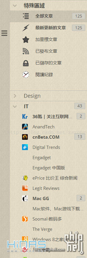 回到TTRSS,导入后可看到你的所有订阅,文件夹和顺序都木有变,感动!