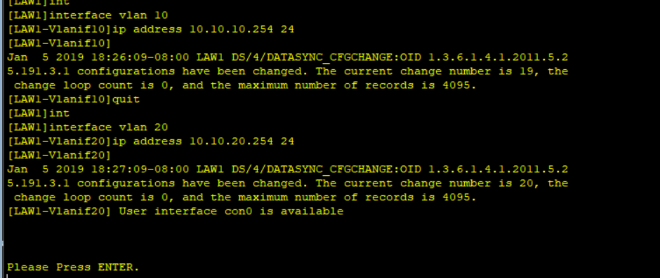 仔细的人会发现,我用的交换机不是S3700,而是S5700,S5700是具有路由功能的,即在其上面设定ip地址,可以实现不同vlan之间可以通信。