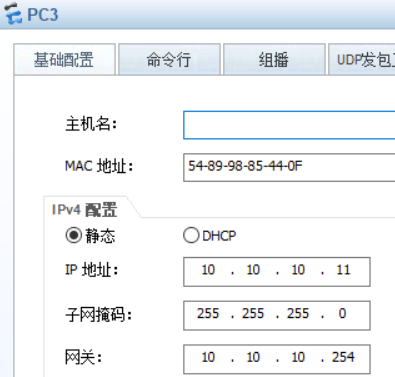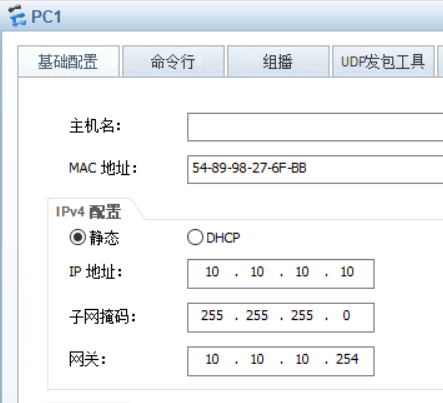 ip address 10.10.10.254(此处前6位与vlan10的ip地址前6位相同) 24