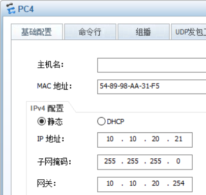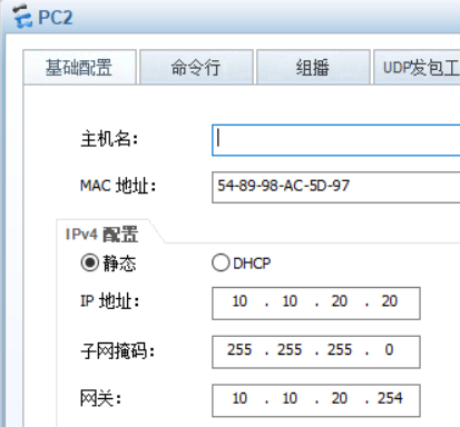 这里面的的全部PC都是一个网络里面的,所以网段要相同,就是前两位要相同,然后这个网络又分子网,vlan 10,vlan 20,所以他们的第三个不能相同,第四位就是自己的PC端号.然后在交换机上面再对不同vlan设定ip地址,当不同vlan到达交换机,交换机就在自身上面查找ip,转换到目的终端,最后实现通信