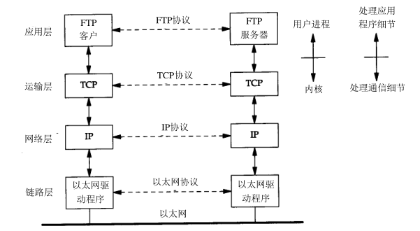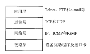 在TCP/IP协议族中,不同的协议在不同的层,下图简单说明了这一点。