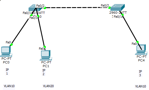 2.配置trunk:VTP通告必须通过trunk链路转发。