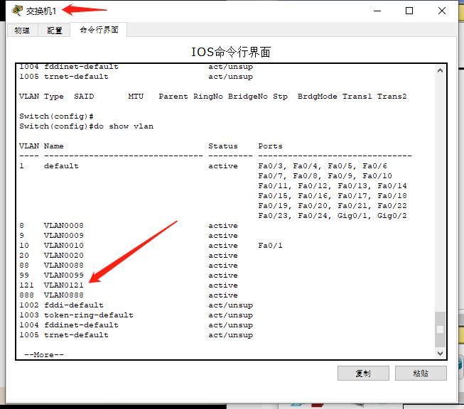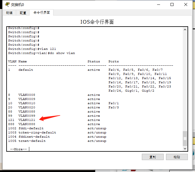 直接就是不能创建了,那么我们继续在S0创建vlan121,看看S1交换机能否会学习
