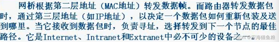 用于互联物理层和数据链路层相同或不同的协议、网络层使用路由协议、而传输层以上使用的协议必须是相同或兼容的网络、路由器丢弃所有的广播帧,所有可以抑制广播风暴