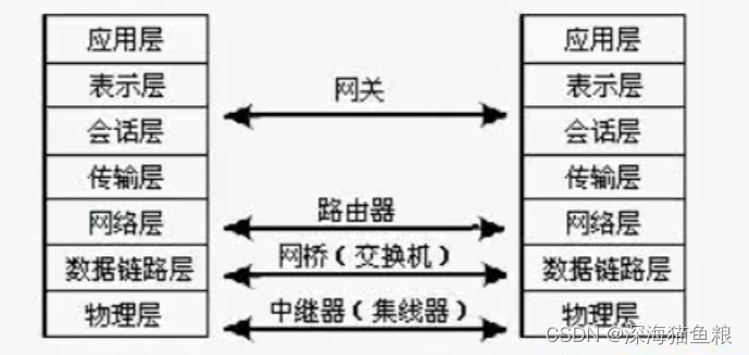 OSI/RM共有7个层次,不同功能层次的网络互联时,所选择网络互联设备也不同。它们和OSI/RM的对应关系如图