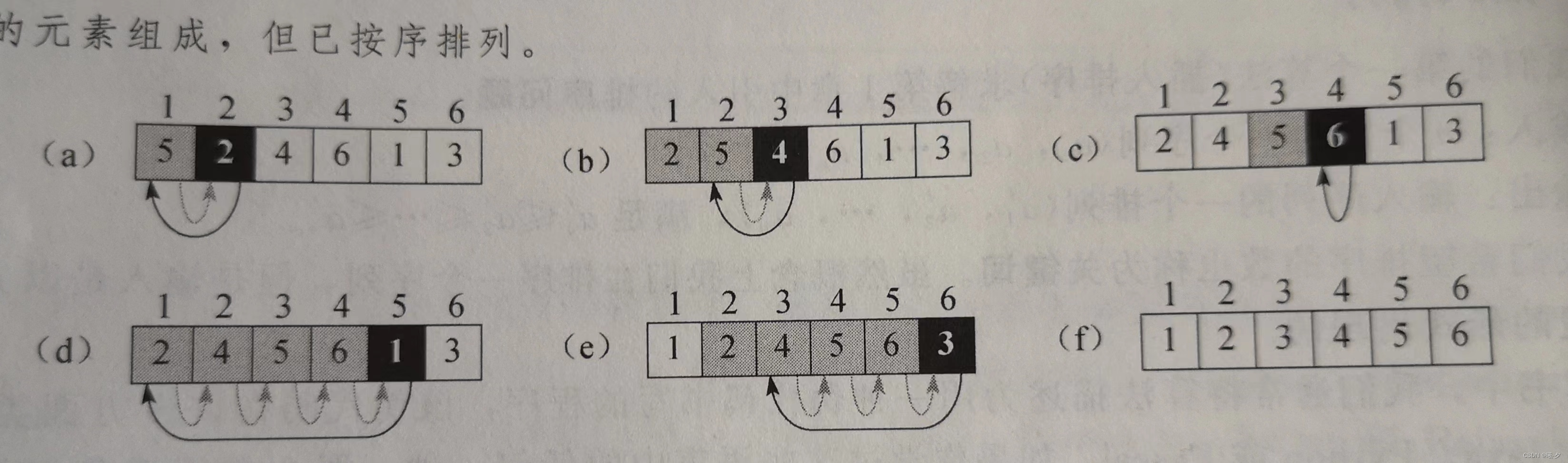 我们把需要排列的数组的性质形式地表示为循环不变式,即在每次迭代开始时,子数组由原来数组中的元素组成,但都已按序排列