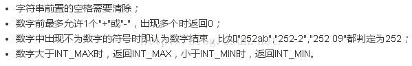 题目的大概意思是:按照atoi函数的转换原则,将输入的字符串转换成整型数。其实就是自行实现atoi函数。