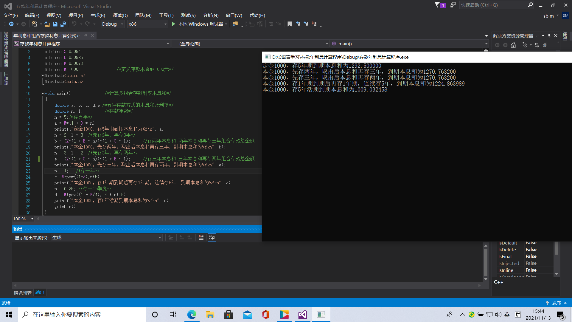 b = (M*(1 + B * n))*(1 + C * l); //存两年本息和,两年本息和再存三年组合存款总金额