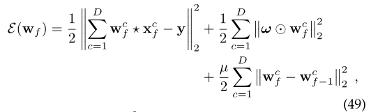 根据被动-主动算法表示时间正则化项。STRCF跟踪器使用ADMM迭代来有效地求解方程(49)。