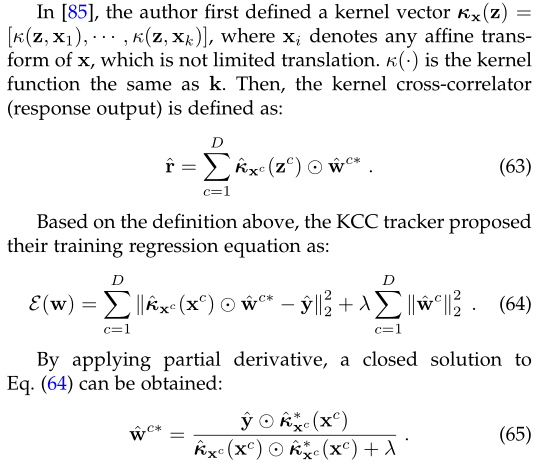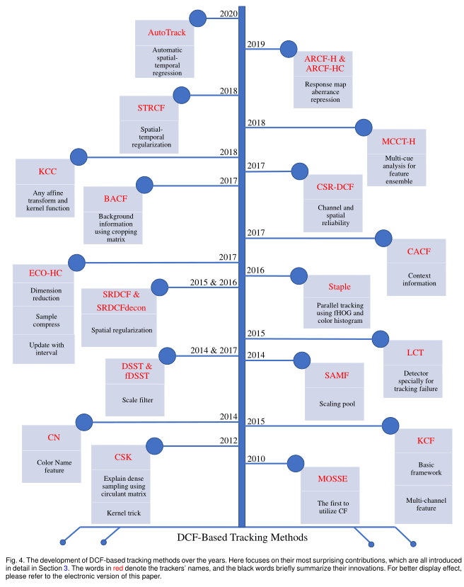 一些基于DCF的追踪器为长期追踪[93]、计算加速[95]、背景抑制[96]和计算技巧[85]提供了额外的解决方案,为基于DCF的追踪社区做出了突出贡献。
