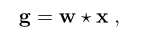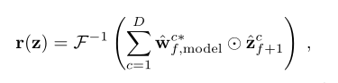 在这里 * 符号表示循环相关算子,g应该是信号之间的循环相关,例如在基于DCF的跟踪方法中,w表示滤波器,x表示搜索样本,g是响应图。为了加速循环卷积计算,使用离散傅立叶变换(DFT)在傅立叶域中计算循环相关,其可以表示为g = F(g),w = F(w),x = F(x)而相关性计算可以变成: