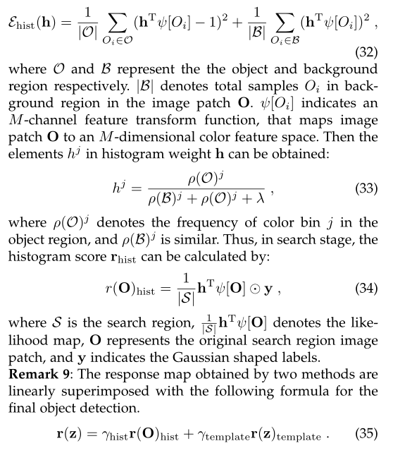M. Danelljan在SRDCF跟踪器的基础上进一步提出了SRDCF decon跟踪器[90]。SRDCF decon跟踪器采用了与SRDCF相似的主要公式: