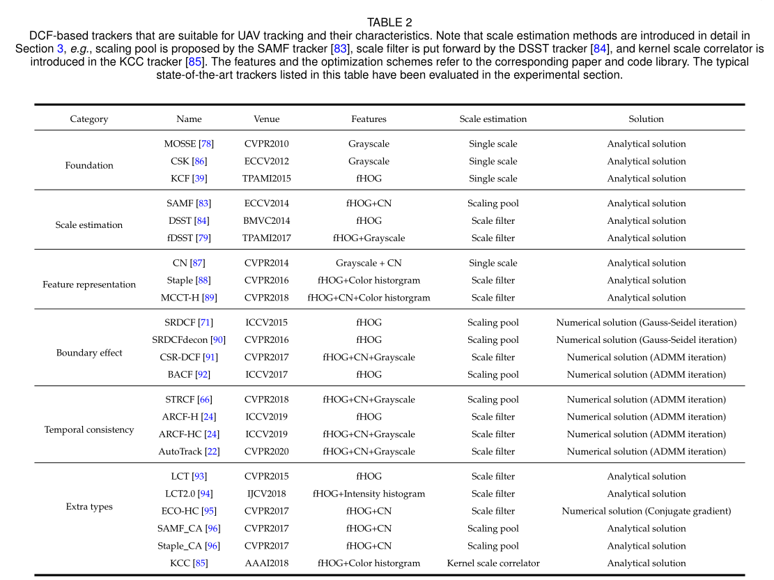 基于前述丰富的基于DCF的跟踪研究,专门用于无人机跟踪的基于DCF的跟踪器终于登上了舞台[24],[22]。