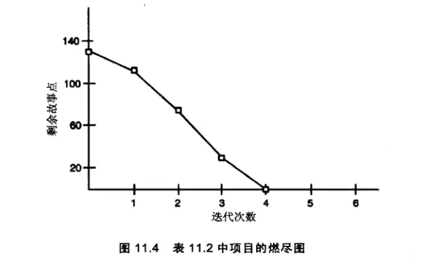 9)迭代燃尽图:展示以故事点表示的每轮迭代末剩余工作量