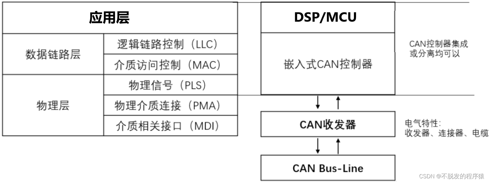 CAN节点通常由三部分组成:CAN收发器、CAN控制器和MCU。
