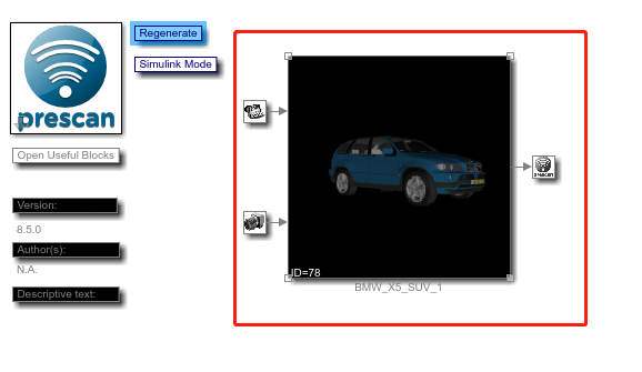 本例程中以摄像头为传感器,做一个简要的展示,生成如下所示的车辆,就是仿真环境中在prescan中设置传感器的车辆和传感器,双击进入。