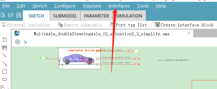 打开create interface block: 左侧是amesim的输出,simulink的输出端,右侧是amesim的输入,simulink的输入端
