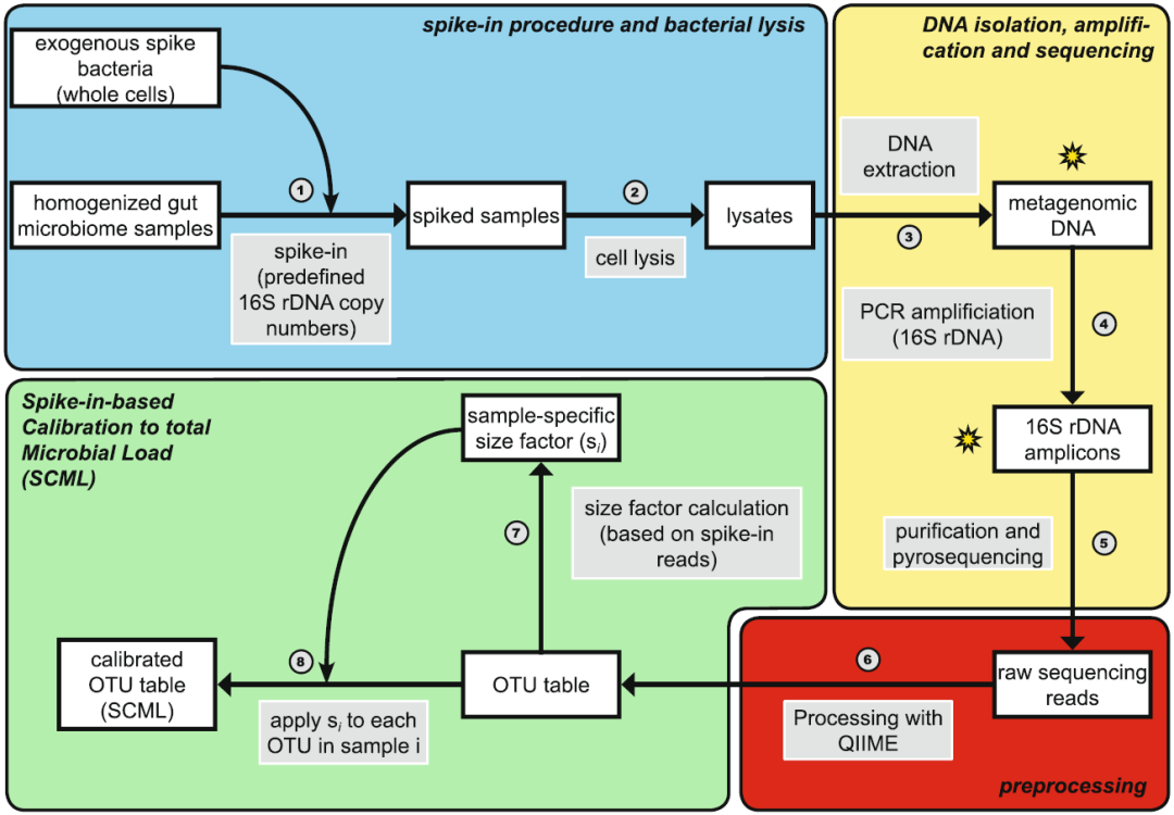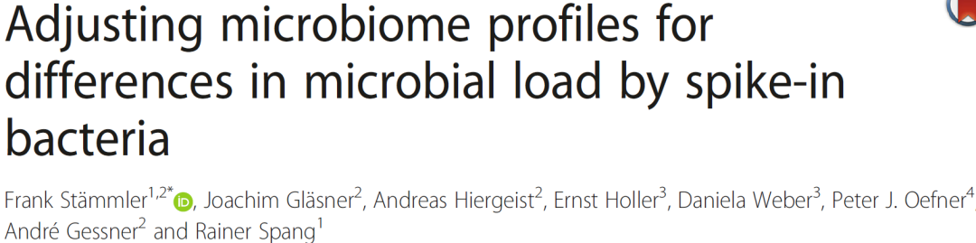 参考文献:Frank Stämmler, Joachim Gläsner, Andreas Hiergeist, Ernst Holler, Daniela Weber, Peter J. Oefner, André Gessner & Rainer Spang. (2016). Adjusting microbiome profiles for differences in microbial load by spike-in bacteria. Microbiome 4, 28, doi: https://doi.org/10.1186/s40168-016-0175-0