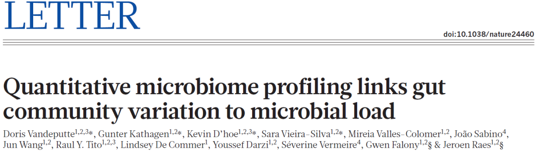 参考文献:Doris Vandeputte, Gunter Kathagen, Kevin D’hoe, Sara Vieira-Silva, Mireia Valles-Colomer, João Sabino, Jun Wang, Raul Y. Tito, Lindsey De Commer, Youssef Darzi, Séverine Vermeire, Gwen Falony & Jeroen Raes. (2017). Quantitative microbiome profiling links gut community variation to microbial load. Nature 551, 507-511, doi: https://doi.org/10.1038/nature24460