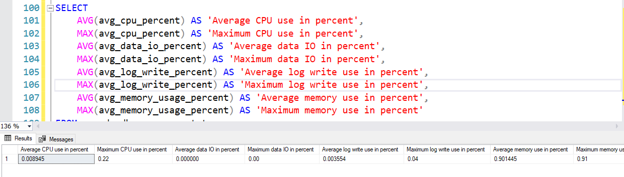 MAX(avg_data_io_percent) AS 'Maximum data IO in percent',
