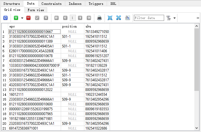 双击数据库表,切换到Data标签即可查看表数据