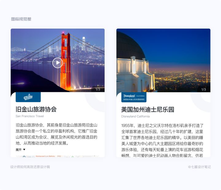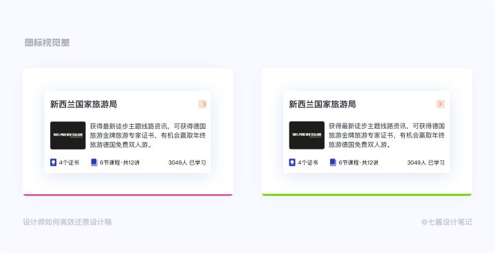 在我走查的经验多了以后,发现 最容易造成落地页面与设计稿视觉差异的,其实就是颜色与间距还有图标的视觉错觉。不要小看这两个细节元素,把控不好它们会让落地页面效果大打折扣。所以在进行页面还原的可以着重对比一下几点: