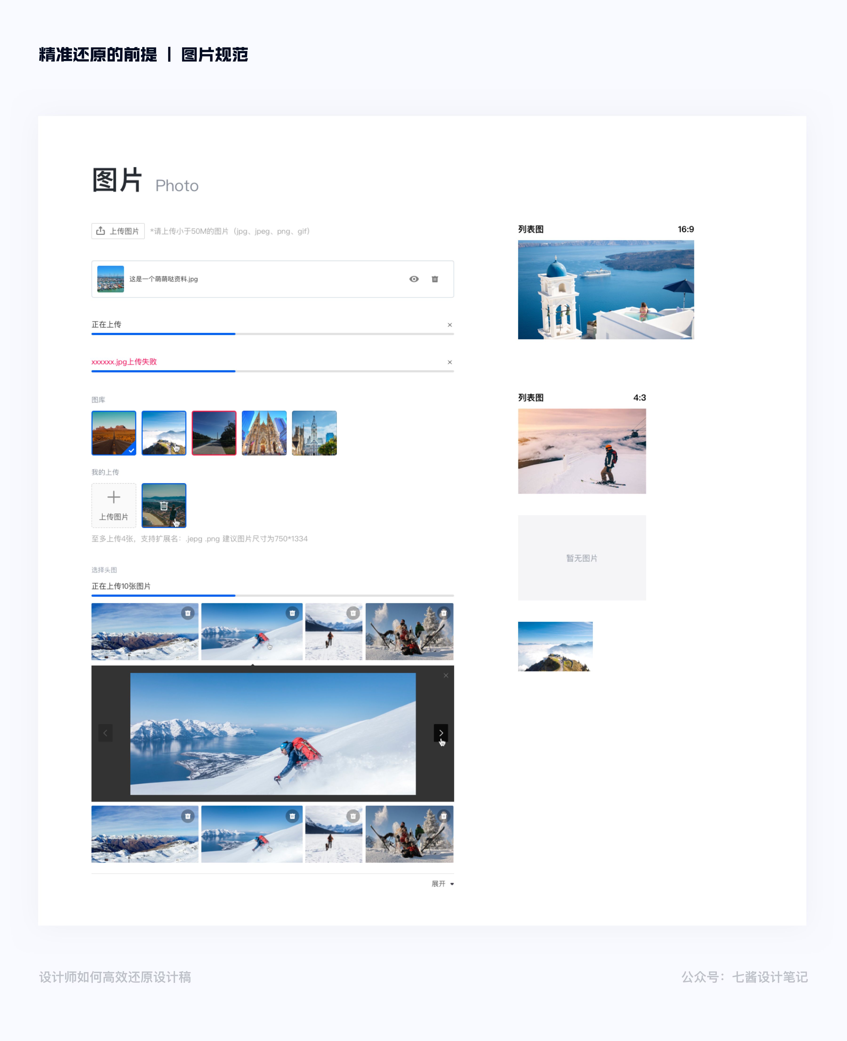 图片作为界面设计的重要组成部分,需要标明尺寸规范,分为不同用途的种类。