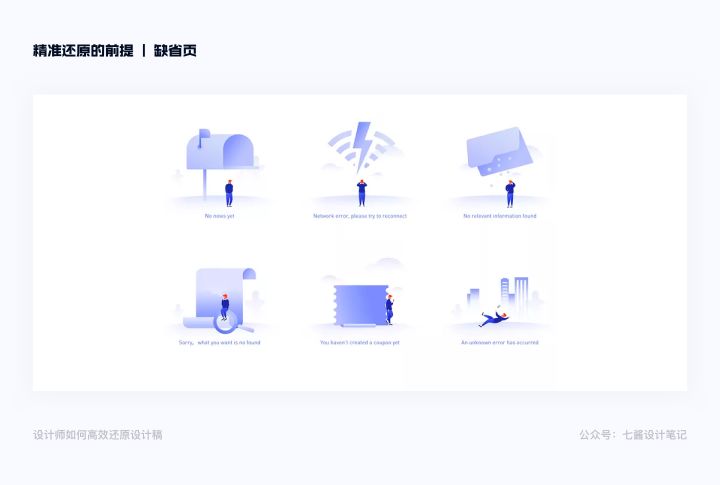 空状态指的是页面中无内容,主要的几个情况,设计师需要根据不同的场景给出文案+插画的表现形式引导用户: