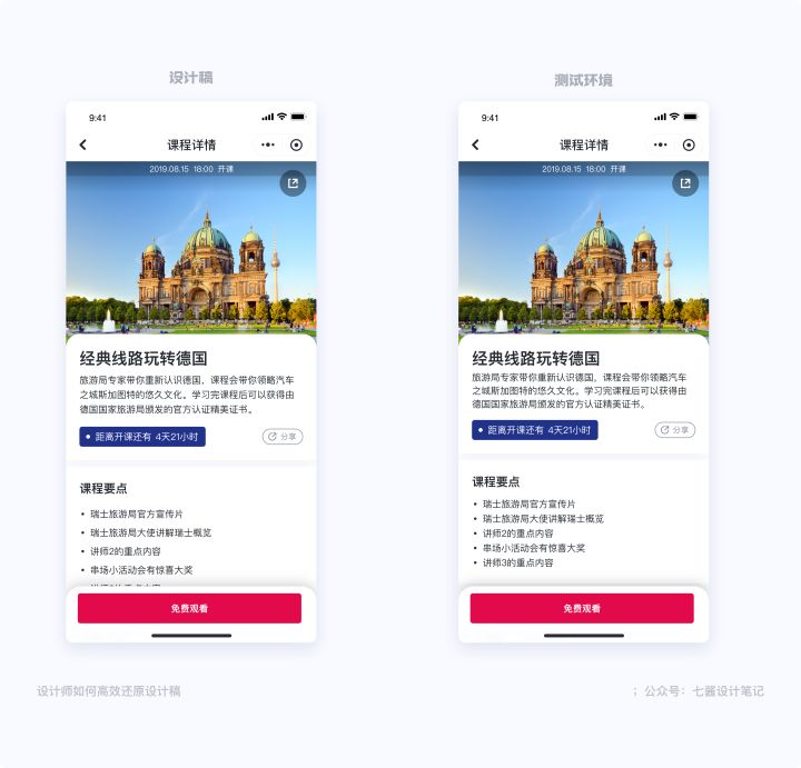 设计还原的时候最后还还看一下不同机型适配的问题。保证不同机型的界面呈现效果一致。