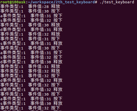 编译成功后会生成test_keyboard,接下来执行test_keyboard这个程序。