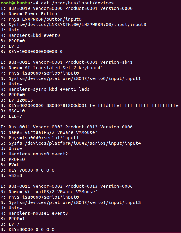 这条指令的含义就是获取与event对应的相关设备信息,在ubuntu系统上,我们输入这个指令可以看到以下结果:
