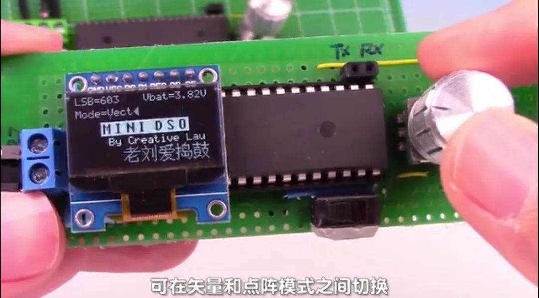 还有一位B站上的大神“老刘爱捣鼓” - 用STC单片机+128*64的OLED屏 + 旋转编码器做的示波器,视频大家可以自己搜,这里只截两张图: