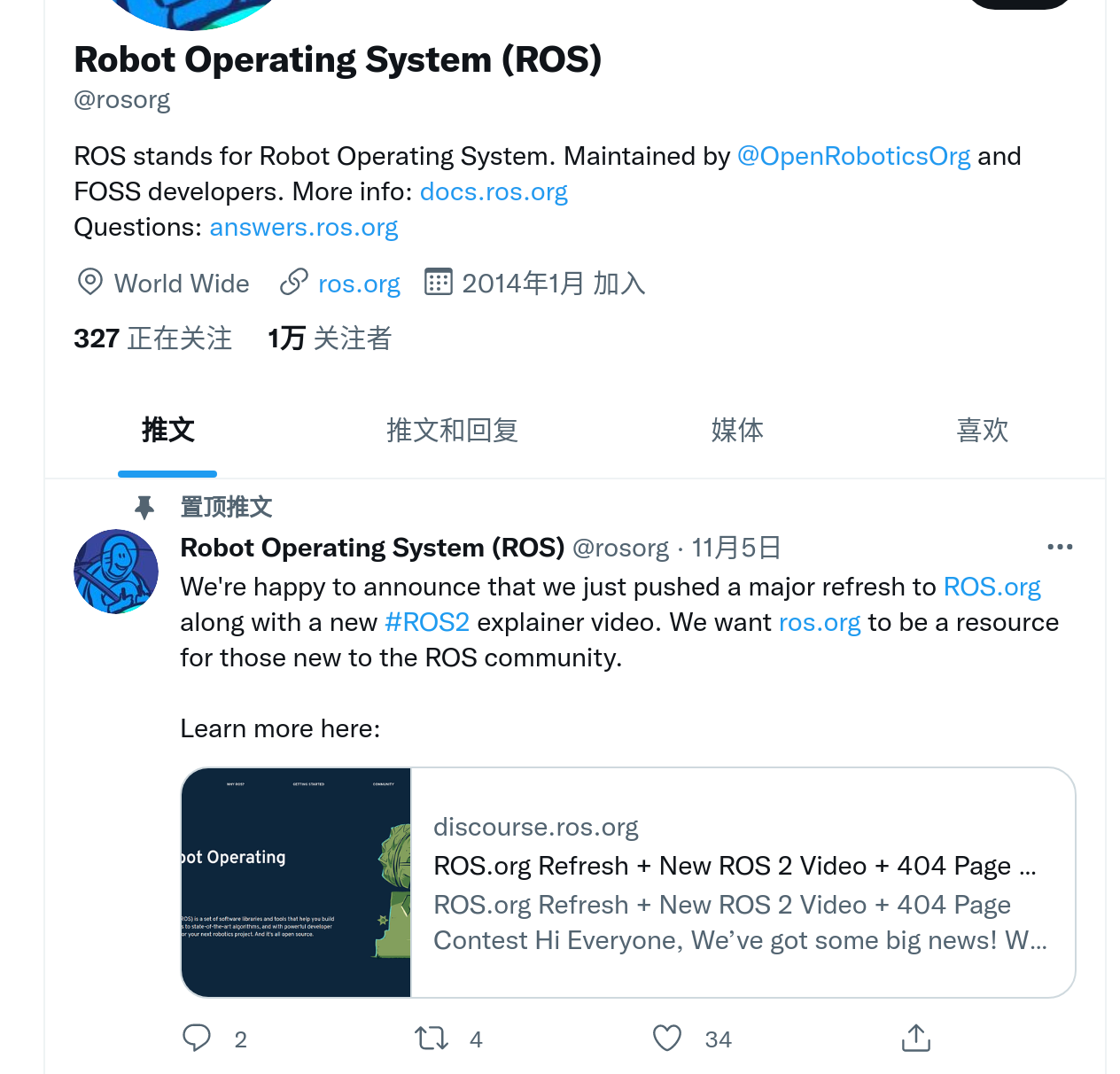 Robot Operating System (ROS) 的twitter (需要翻墙)