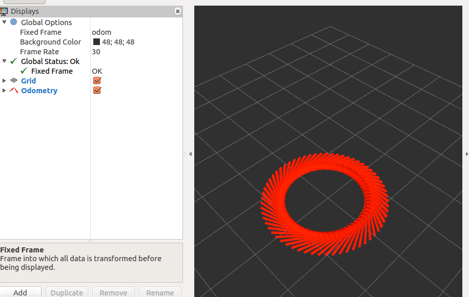 我们将编写一些用于通过ROS发布 nav_msgs/Odometry消息的示例代码,以及使用tf的虚拟机器人的变换。