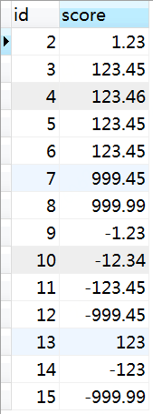insert into decimal_test(score) VALUES(-12.34); -- -12.34