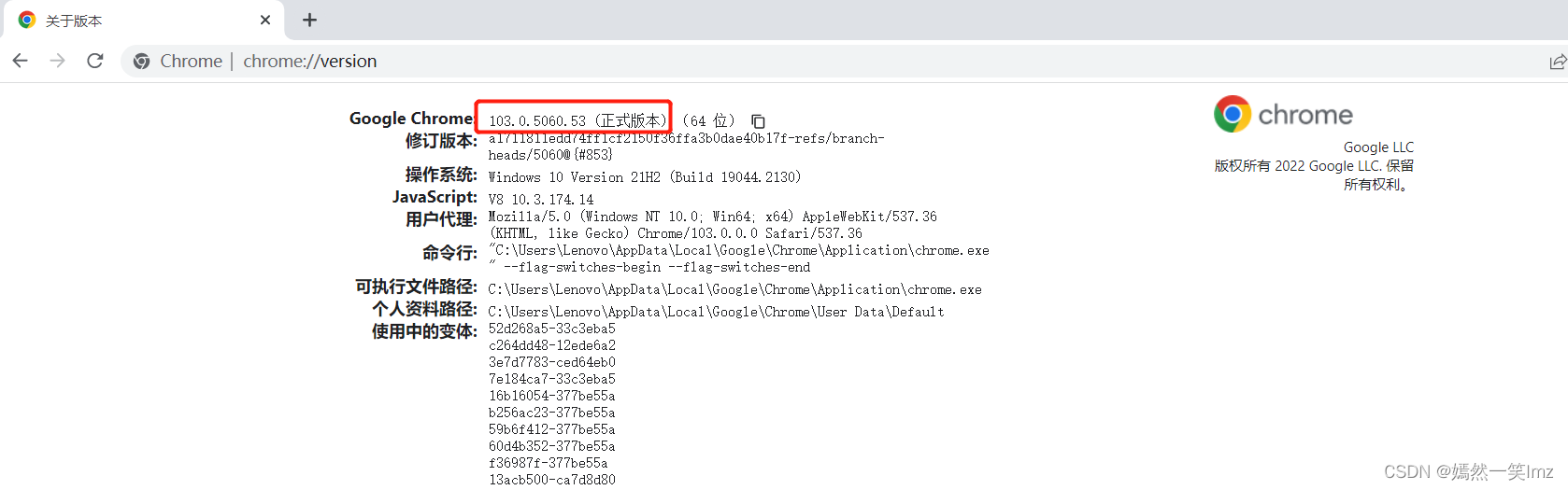 ①、查看当前浏览器版本号,浏览器中输入:chrome://version/