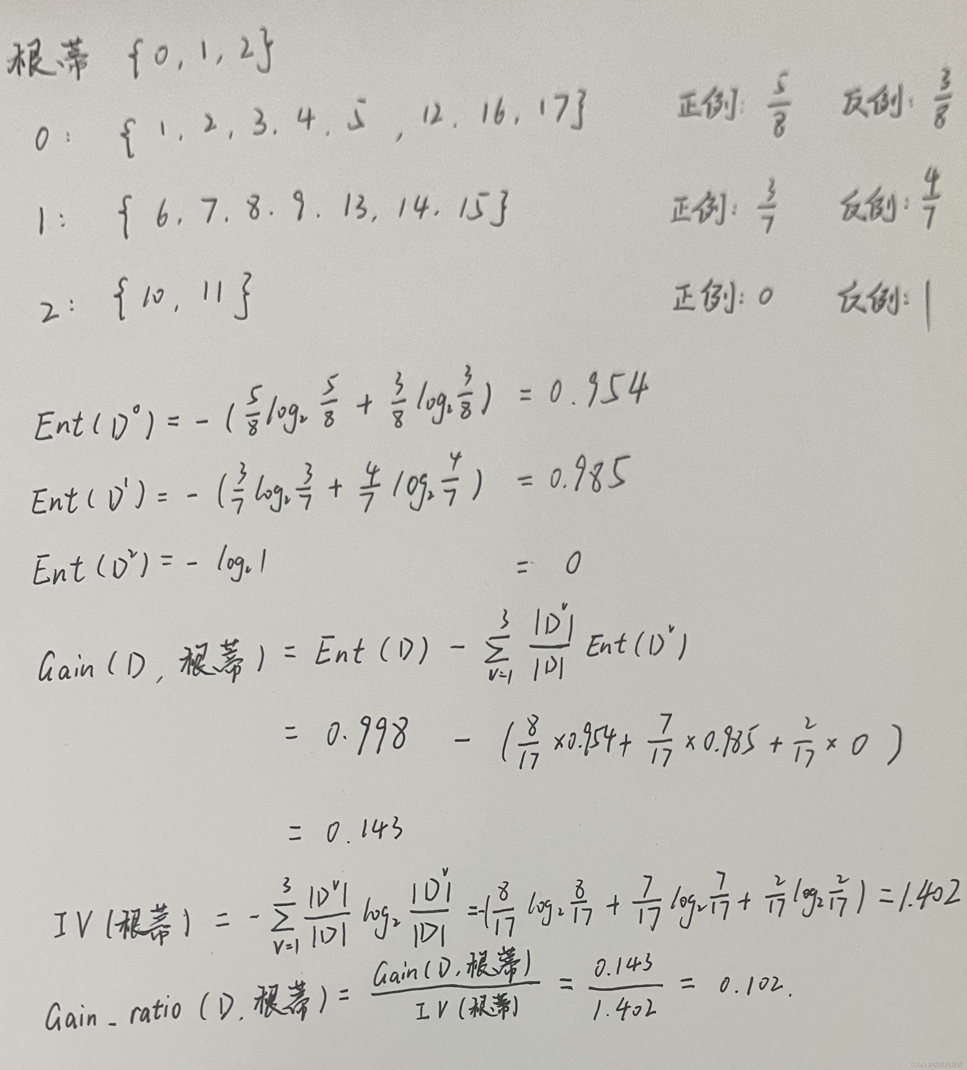 Ent(D)的值越大,则D的不纯度越大,则D的不确定性越大。