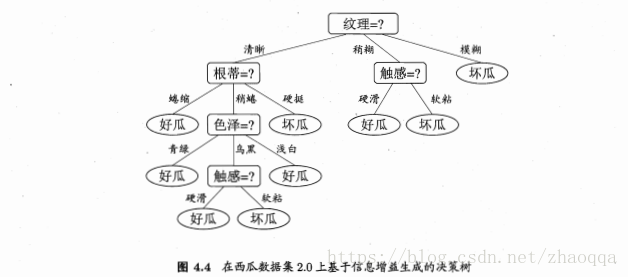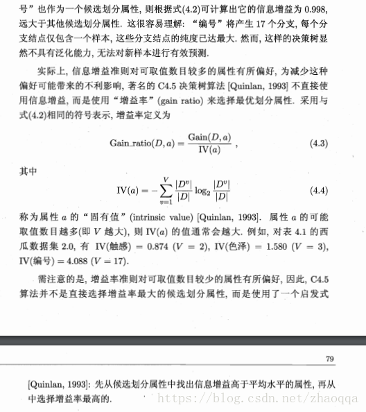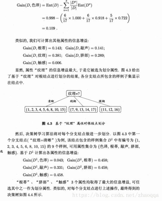 。可以计算出属性a作为划分属性,最后得到的信息增益如下: