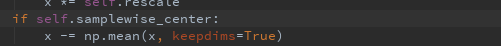 在使用时候,一直对featurewise_center、featurewise_center不解,查阅源码知晓: