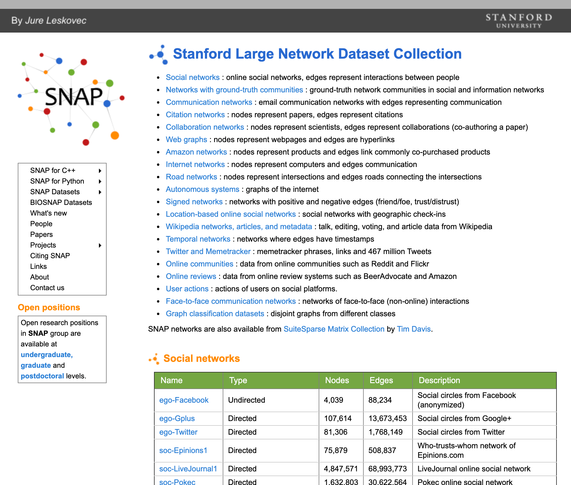Stanford Large Network Dataset Collection