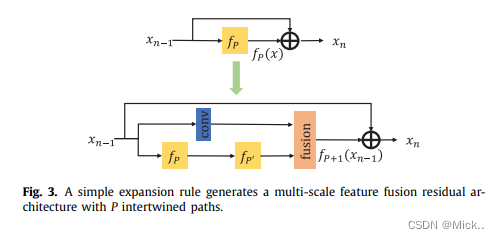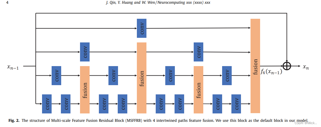 多尺度特征融合残差模块,它有多个相互交叉融合的路径。MSFFRB有两个部分:多尺度特征融合和局部残差学习。