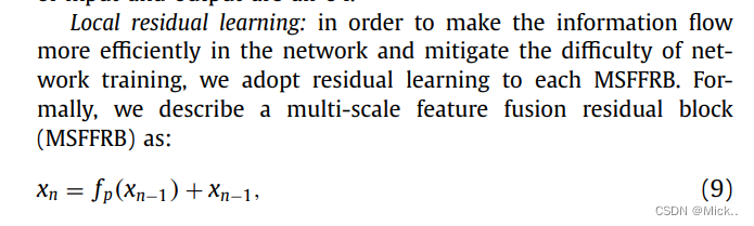 局部残差学习:为了使信息流通更加有效并且避免训练的困难,作者使用局部残差学习。