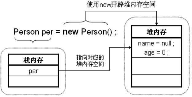 下面这个图,很清楚地说明对象在new的时候是怎样开辟内存空间的