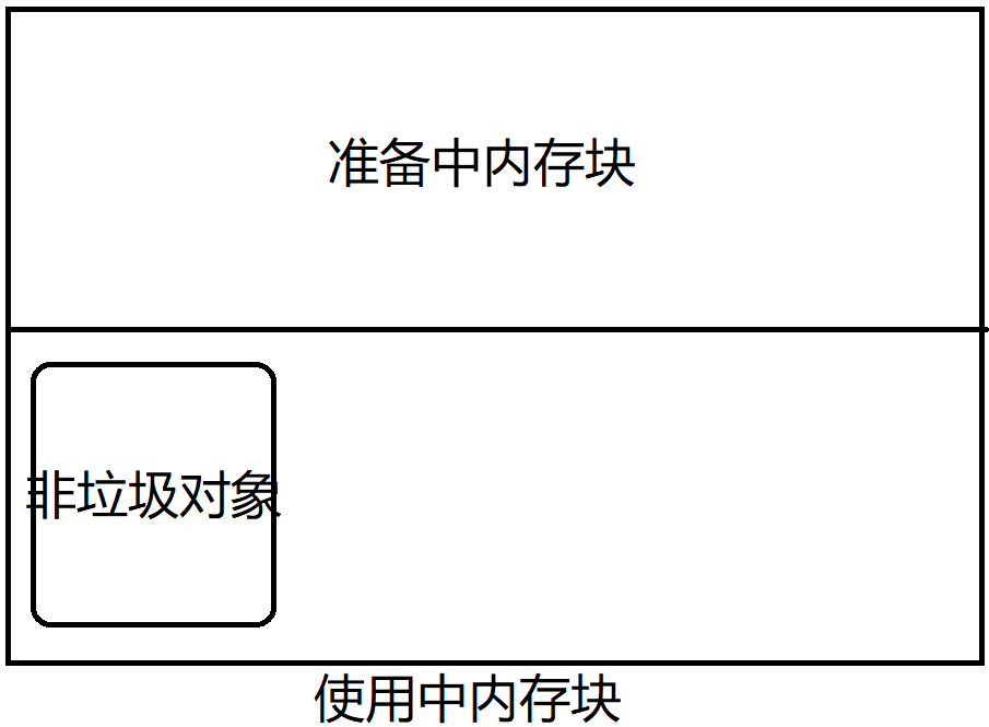 复制清理算法与上述两个算法最大的区别就是它的内存模型不同,复制清理算法是基于分为两大块的内存工作的。把整个内存分为两块,在一段时间内只用其中的一块,另一块标记为等待状态,当使用的这一块内存区域没有可用内存时,开始复制清理的过程。首先还是找出垃圾对象,然后把不是垃圾的对象复制到另一块等待状态的内存中并把这块内存标记为使用状态,程序接下来的一段时间使用这块新的内存,之前的内存块则是全盘清理并标记为等待状态,等待下一次复制。