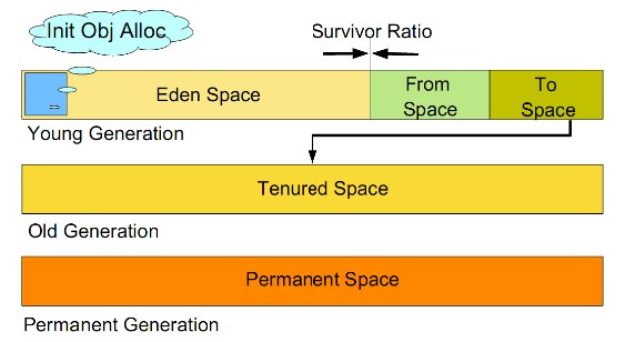 2.新生代内存按照8:1:1的比例分为一个eden区和两个survivor(survivor0,survivor1)区。一个Eden区,两个 Survivor区(一般而言)。大部分对象在Eden区中生成。回收时先将eden区存活对象复制到一个survivor0区,然后清空eden区,当这个survivor0区也存放满了时,则将eden区和survivor0区存活对象复制到另一个survivor1区,然后清空eden和这个survivor0区,此时survivor0区是空的,然后将survivor0区和survivor1区交换,即保持survivor1区为空, 如此往复。