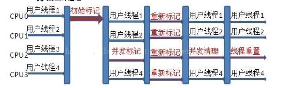 清理垃圾对象。和用户线程并发执行