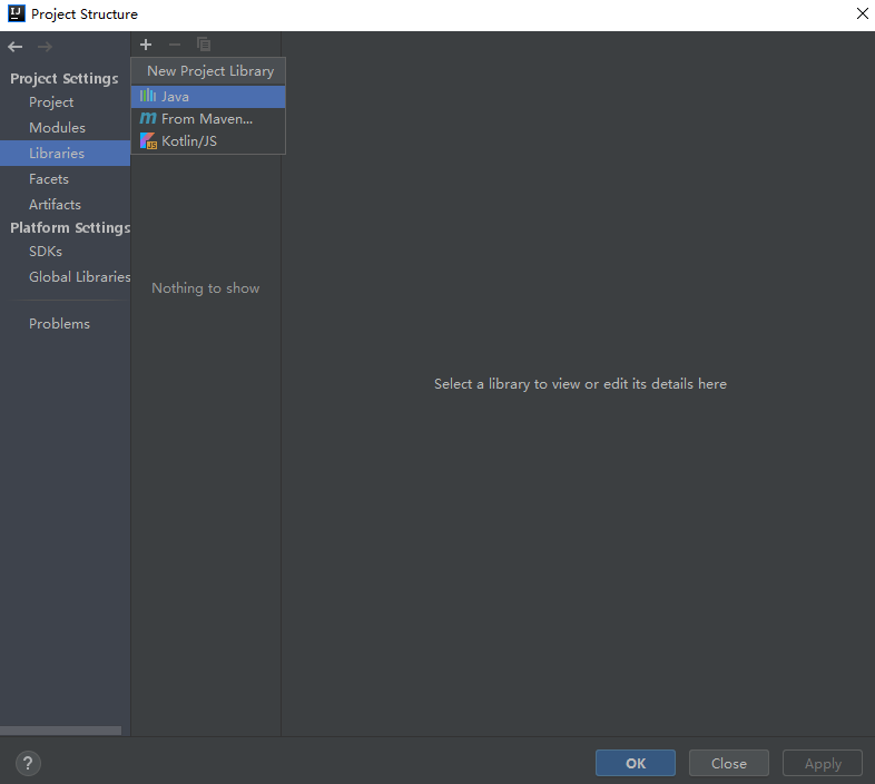 左侧选择Libraries,点击+号,点击Java