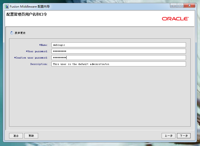 这个域名和与位置比较重要,因为我们部署的项目会加载到这个文件下的tmp中,接着下一步这个时候我们设置控制台的用户和密码,用户默认是weblogic ,当然用户名和密码都可以自己随便玩